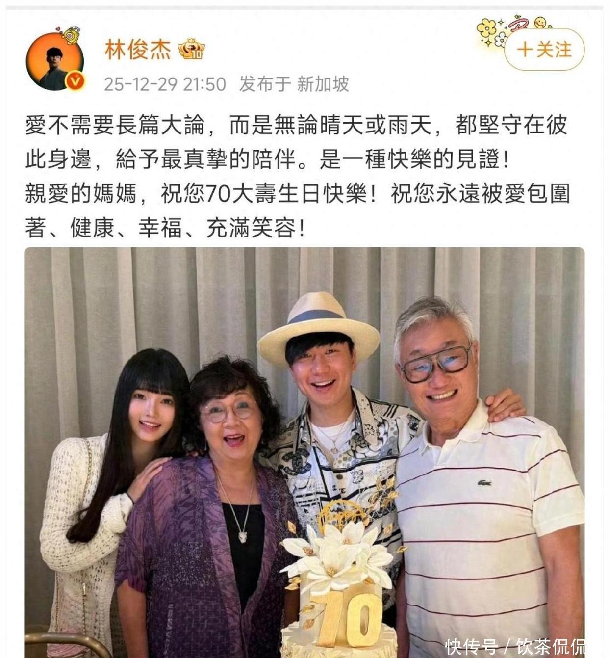 出道二十多年的林俊杰,一直给人一种专注音乐、感情生活低调到几乎空白的印象。。粉丝们听他唱了那么多情歌 却很少见到他真正分享自己的私人温暖。。这次 就�年岁末的一个普通晚上,他忽然在社交平台发了一张全家福,照片里除了父母 还有一位年轻姑娘亲昵地靠在林妈妈身边 四个人笑得那么自然、那么从心底里开心。。很多人一看就愣住了:这是在给妈妈�大寿,还是顺便把藏了好久的幸福亮给大家看?那种突然的反差 真的让人心里一暖,又忍不住想多了解一些背后的故事。。